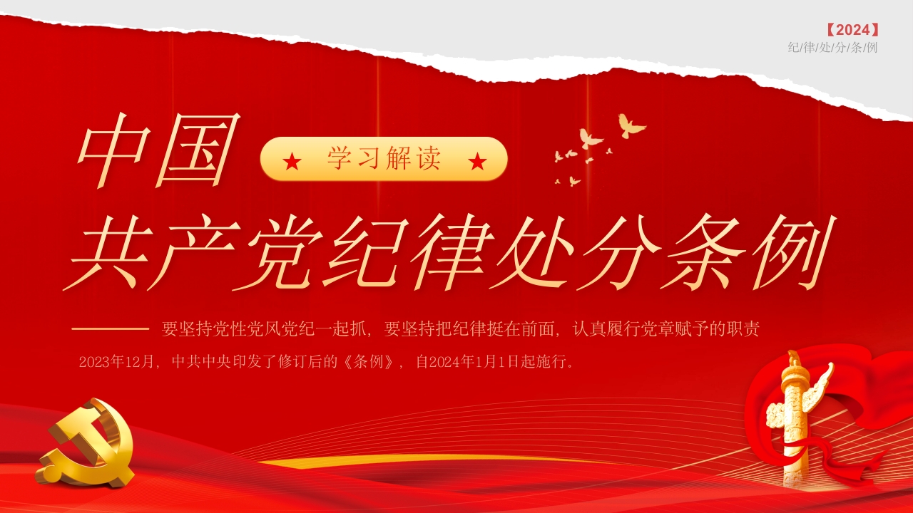 / 党纪学习教育PPT课件:新版《中国共产党纪律处分条例》宣讲提纲(重要意义、亮点解读、学习要求)