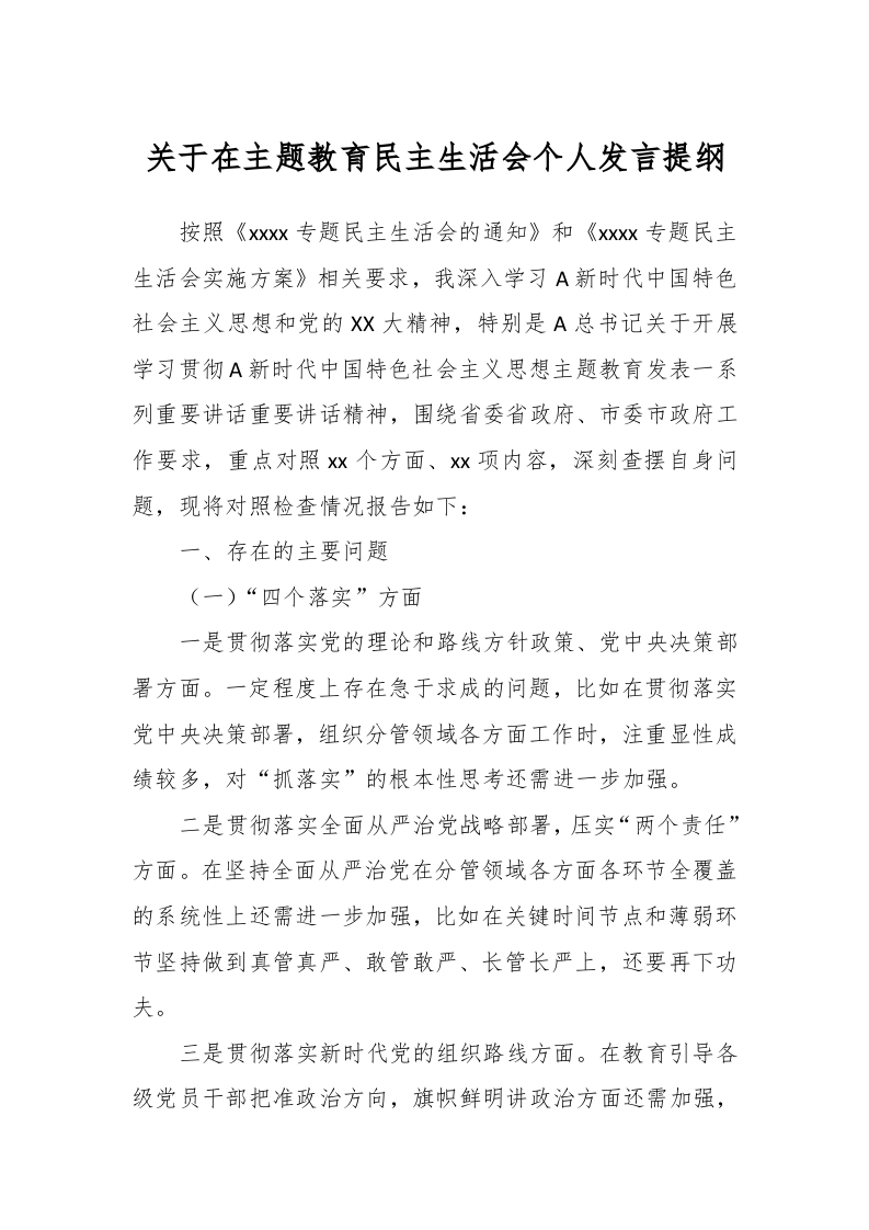 关于行政机关领导干部年度民主生活会个人发言提纲