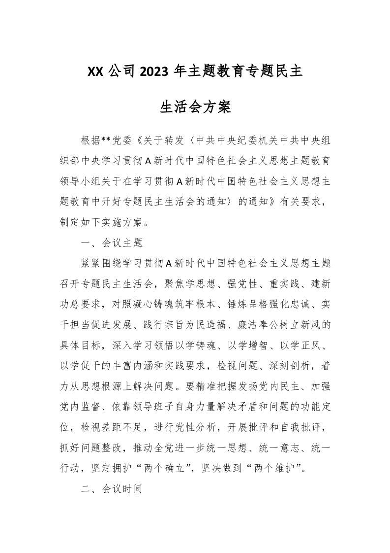 2023年主题教育专题民主生活会对照检查剖析发言材料