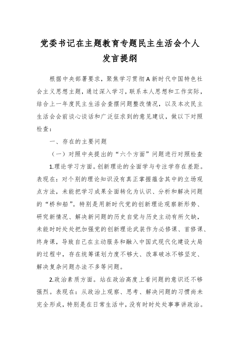 / 党委书记在主题教育专题民主生活会个人发言提纲