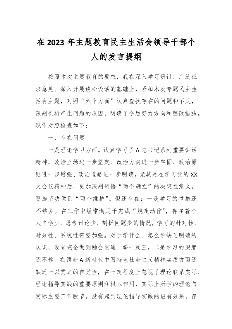 / 在2023年主题教育民主生活会领导干部个人的发言提纲