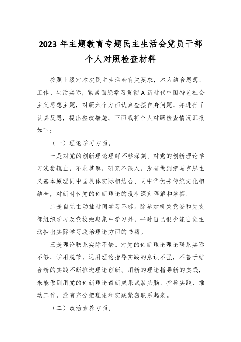 / 2023年主题教育专题民主生活会党员干部 个人对照检查材料