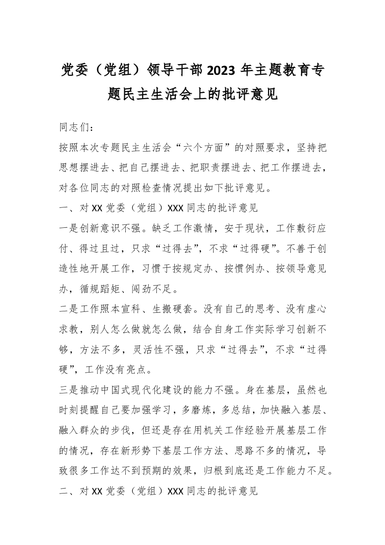 / 党委(党组)领导干部2023年主题教育专题民主生活会上的批评意见