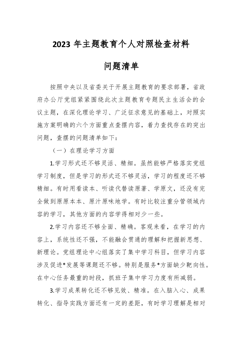 2023年主题教育民主生活会对照检查材料汇编(6篇)(领导班子)