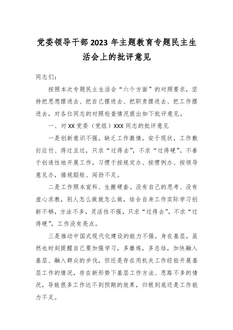 / 党委领导干部在2023年主题教育专题民主生活会上的批评意见