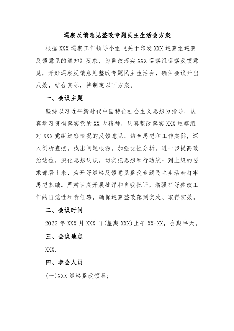 / 巡察反馈意见整改专题民主生活会方案
