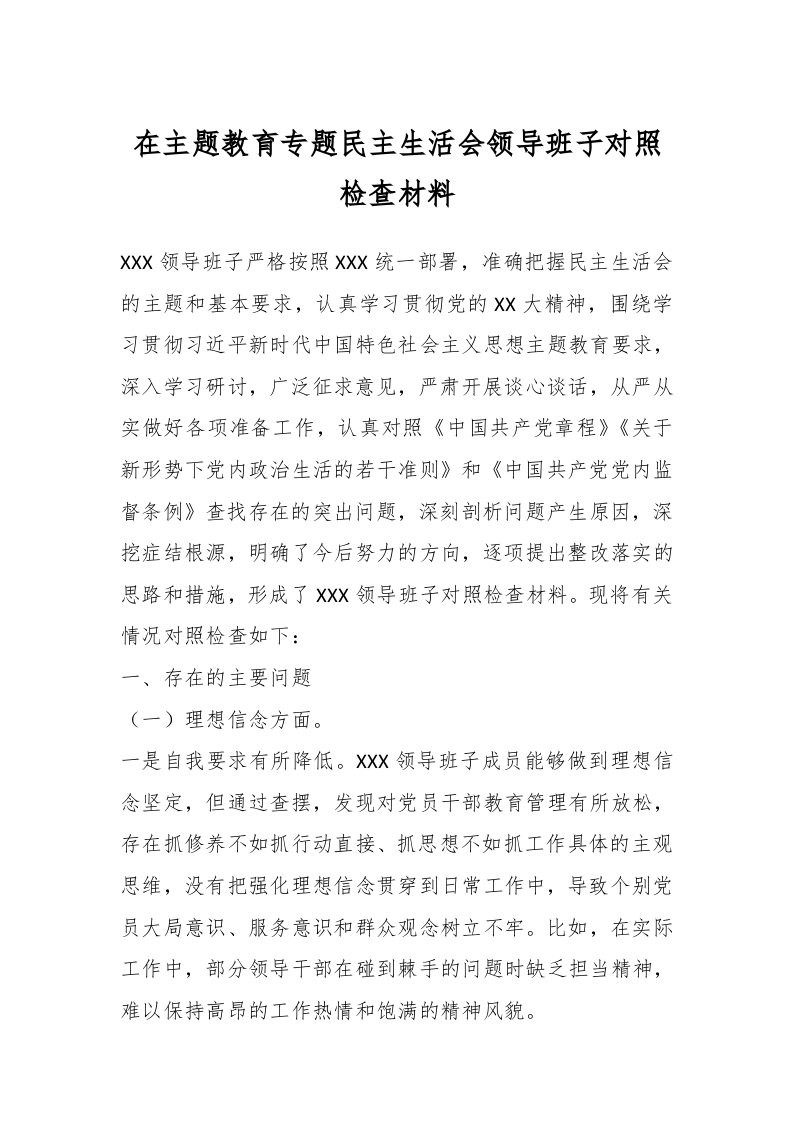 / 在主题教育专题民主生活会领导班子对照检查材料