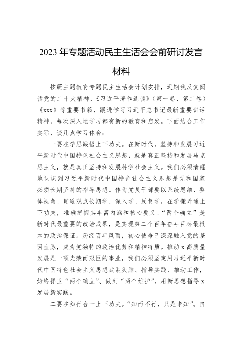 / 2023年专题活动民主生活会会前研讨发言材料