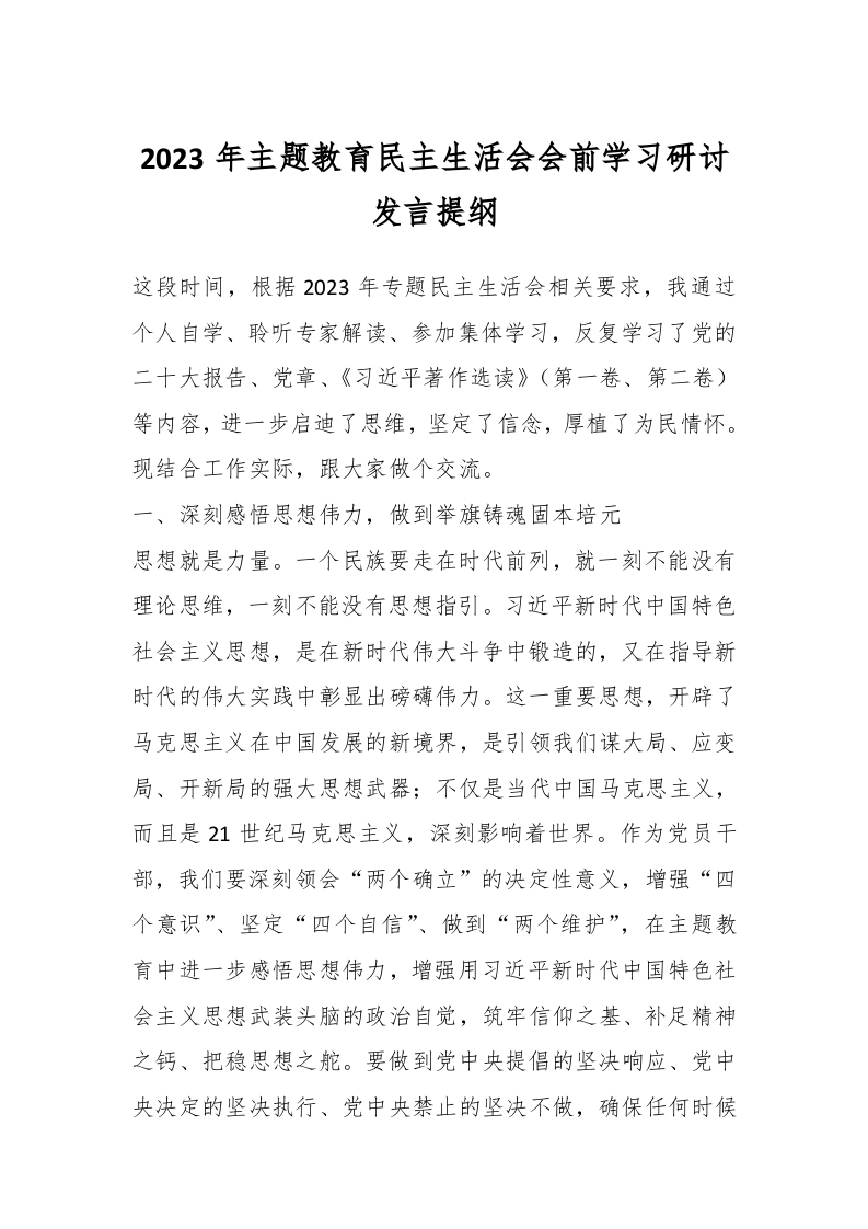 / 2023年主题教育民主生活会会前学习研讨发言提纲
