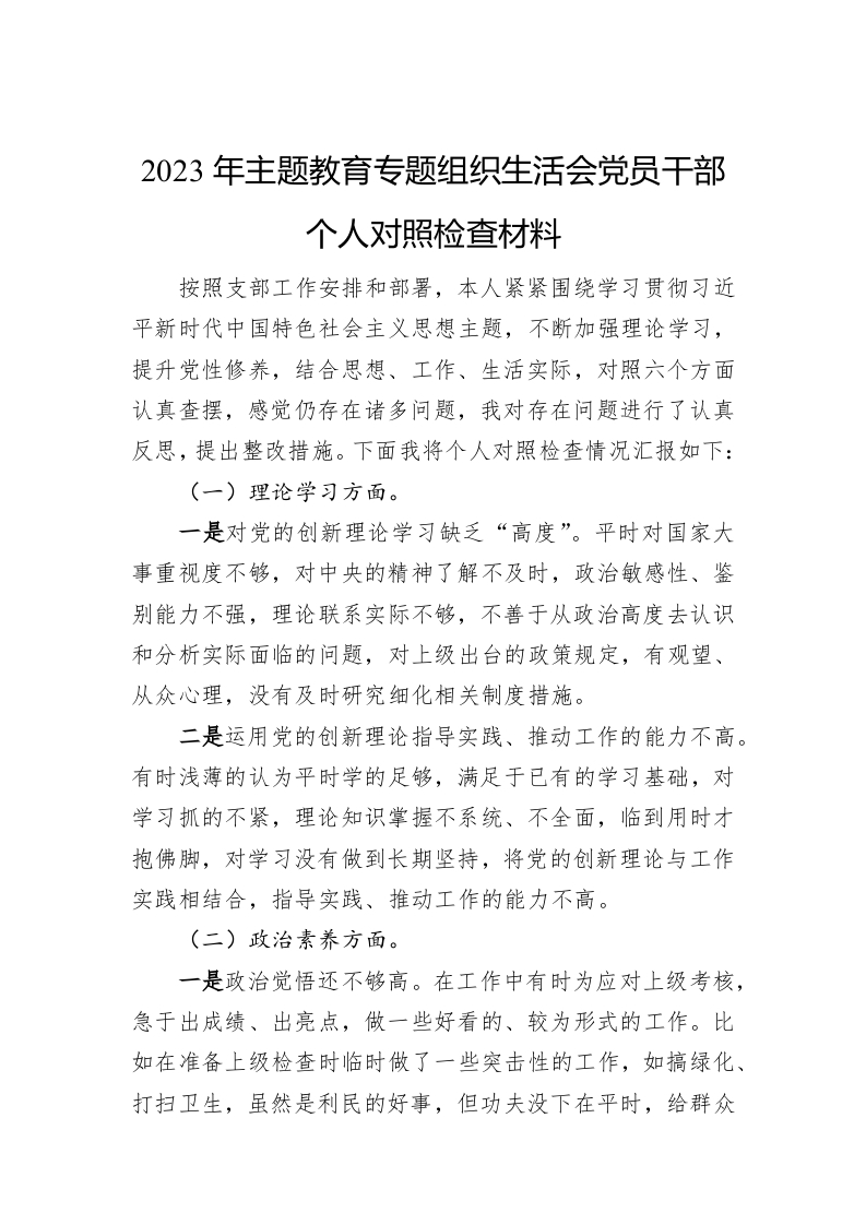 / 2023年主题教育专题组织生活会党员干部个人对照检查材料