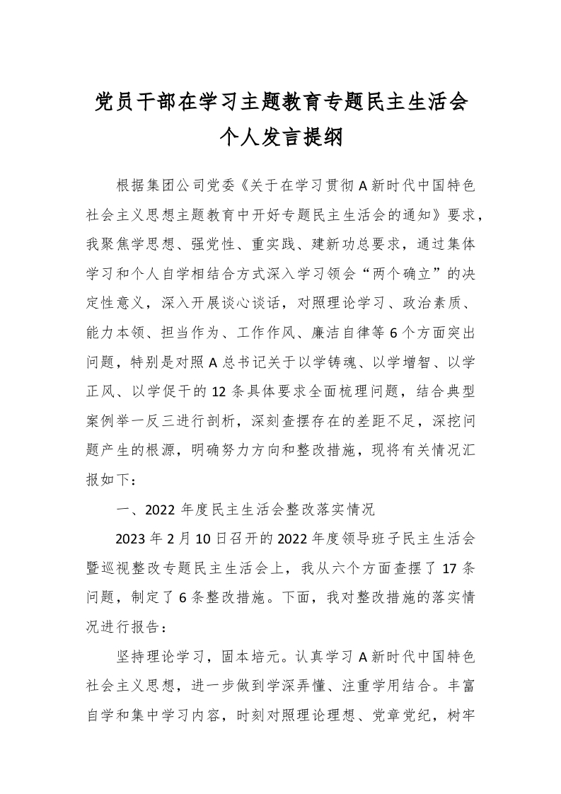 / 党员干部在学习主题教育专题民主生活会个人发言提纲