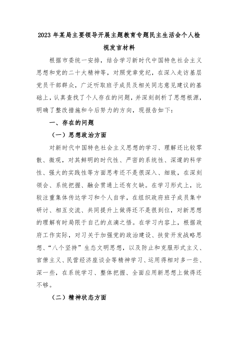 / 2023年某局主要领导开展主题教育专题民主生活会个人检视发言材料