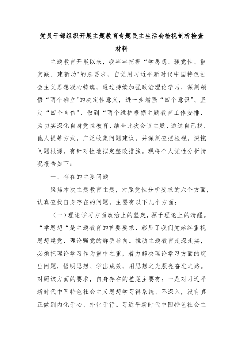 / 党员干部组织开展主题教育专题民主生活会检视剖析检查材料