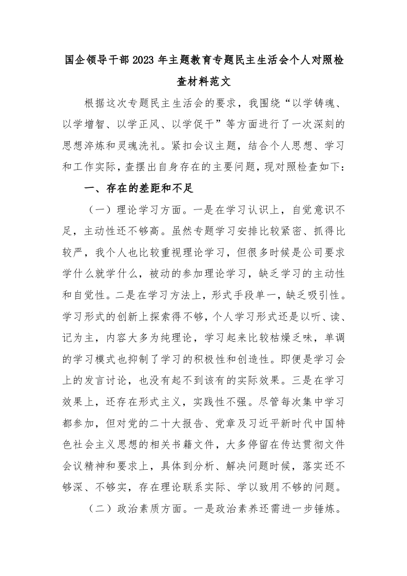 / 国企领导干部2023年主题教育专题民主生活会个人对照检查材料范文