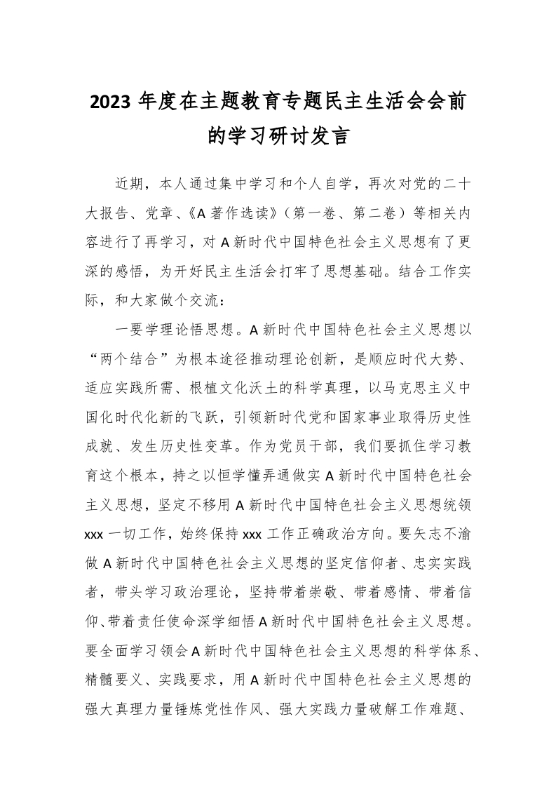 2023年度在主题教育专题民主生活会会前的学习研讨发言