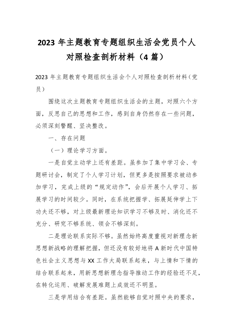 / (4篇)2023年主题教育专题组织生活会党员个人对照检查剖析材料