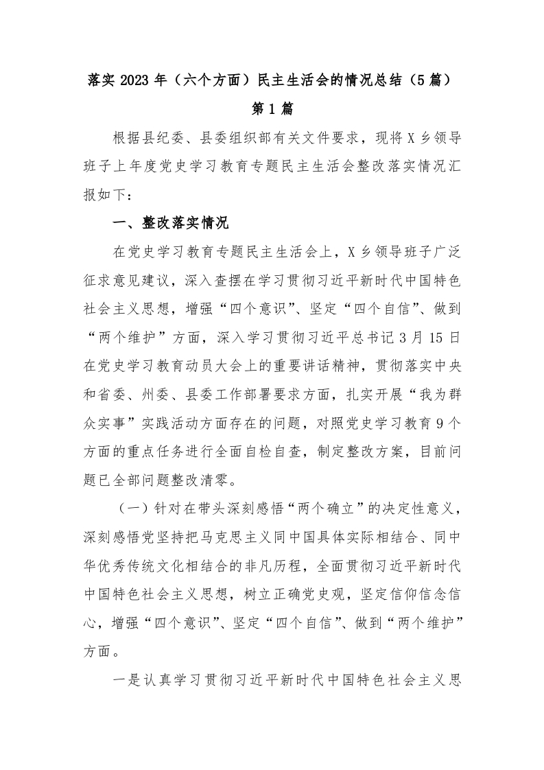 / (5篇)落实2023年(六个方面)民主生活会的情况总结