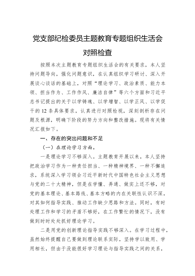 / 党支部纪检委员主题教育专题组织生活会对照检查
