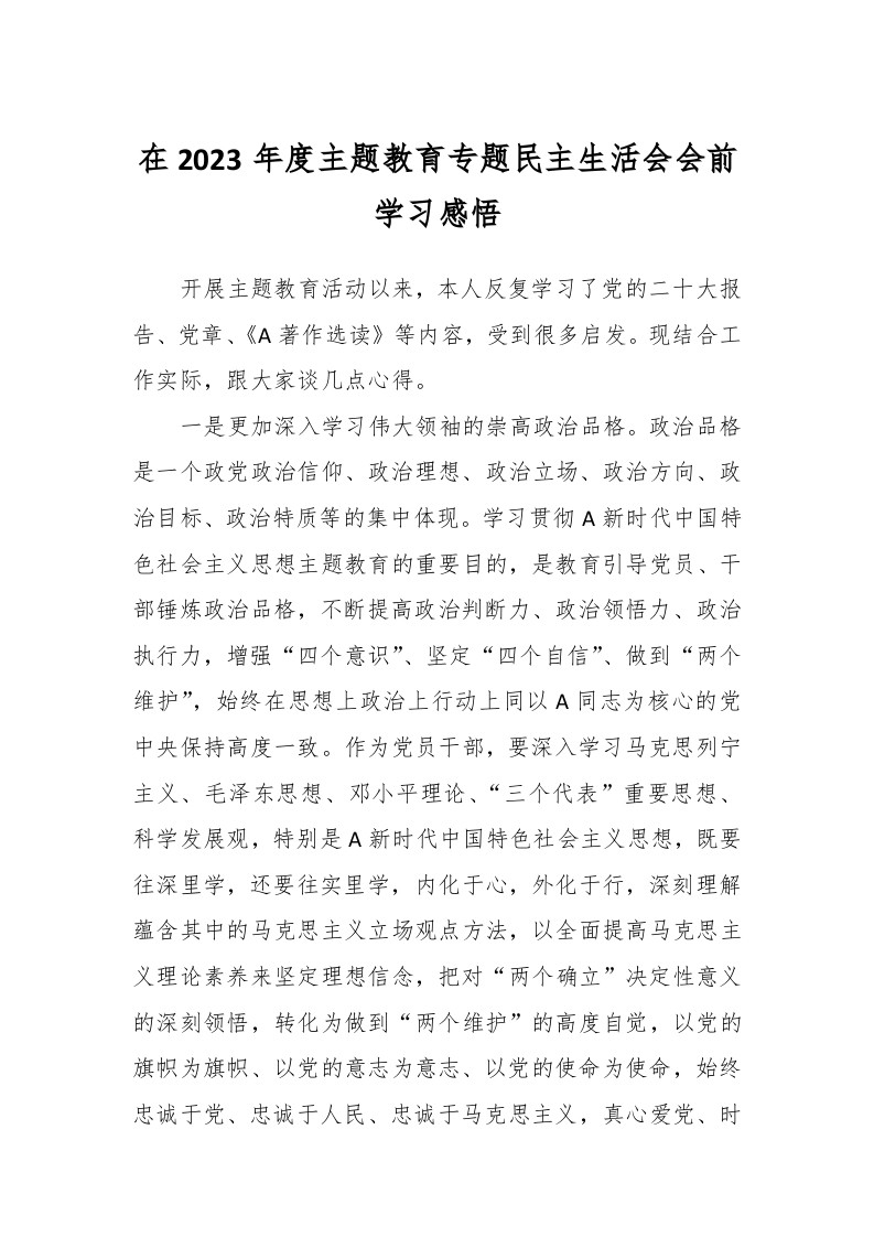 / 在2023年度主题教育专题民主生活会会前学习感悟