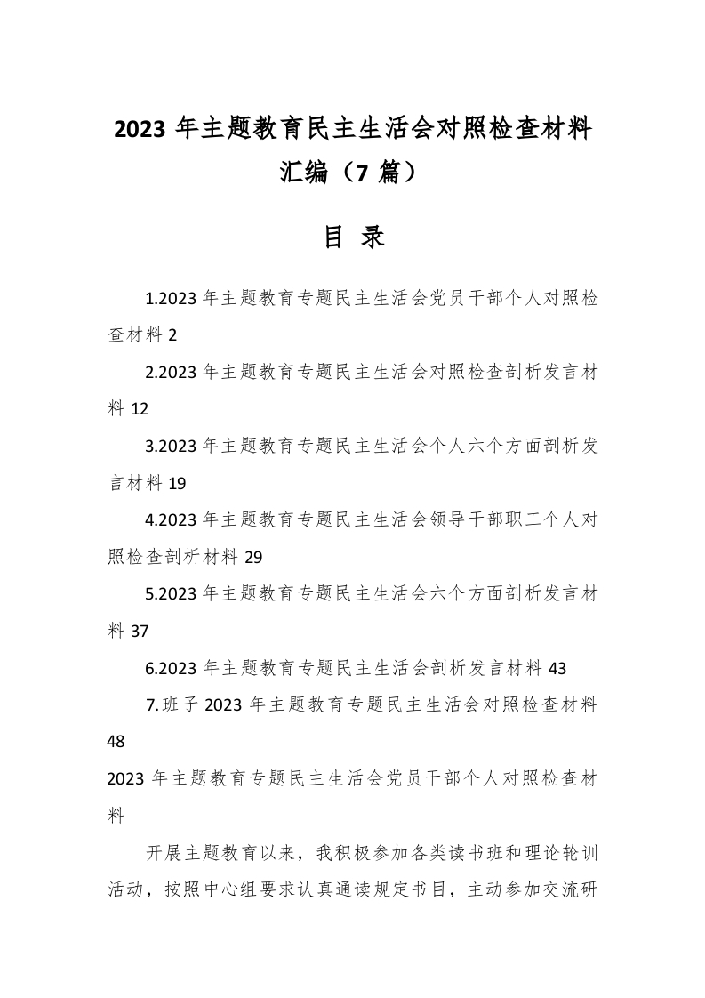 / (6篇)2023年主题教育民主生活会对照检查材料汇编