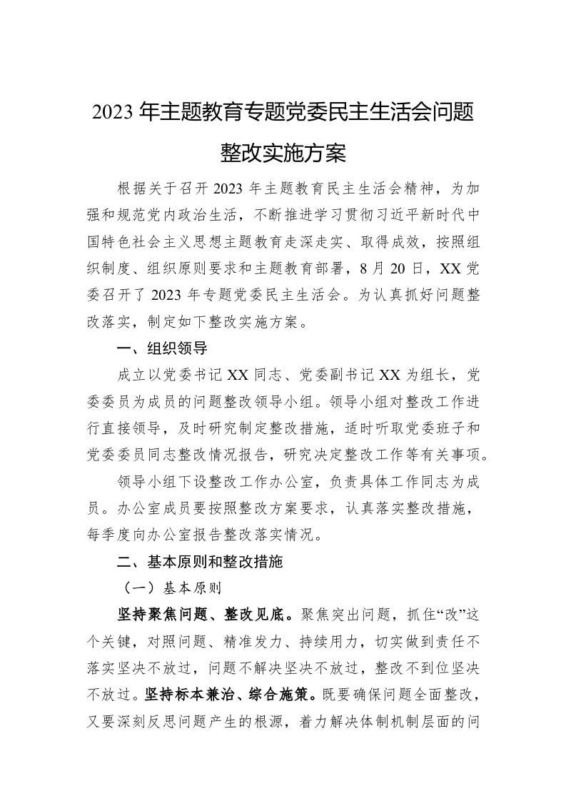 / 2023年主题教育专题党委民主生活会问题整改实施方案