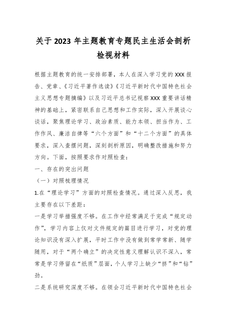 / 关于2023年主题教育专题民主生活会剖析检视 材料