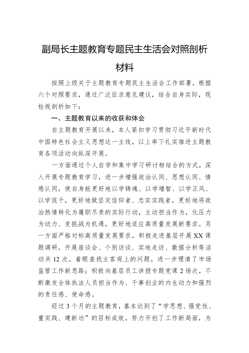 / 副局长主题教育专题民主生活会对照剖析材料