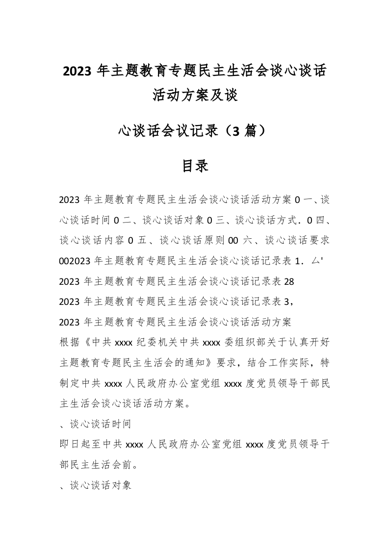 3篇_2023年主题教育专题民主生活会谈心谈话活动方案及谈心谈话会议记录