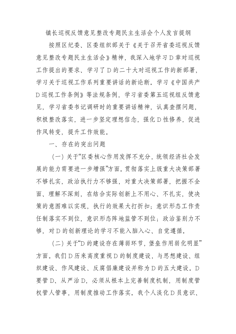 / 镇长巡视反馈意见整改专题民主生活会个人发言提纲